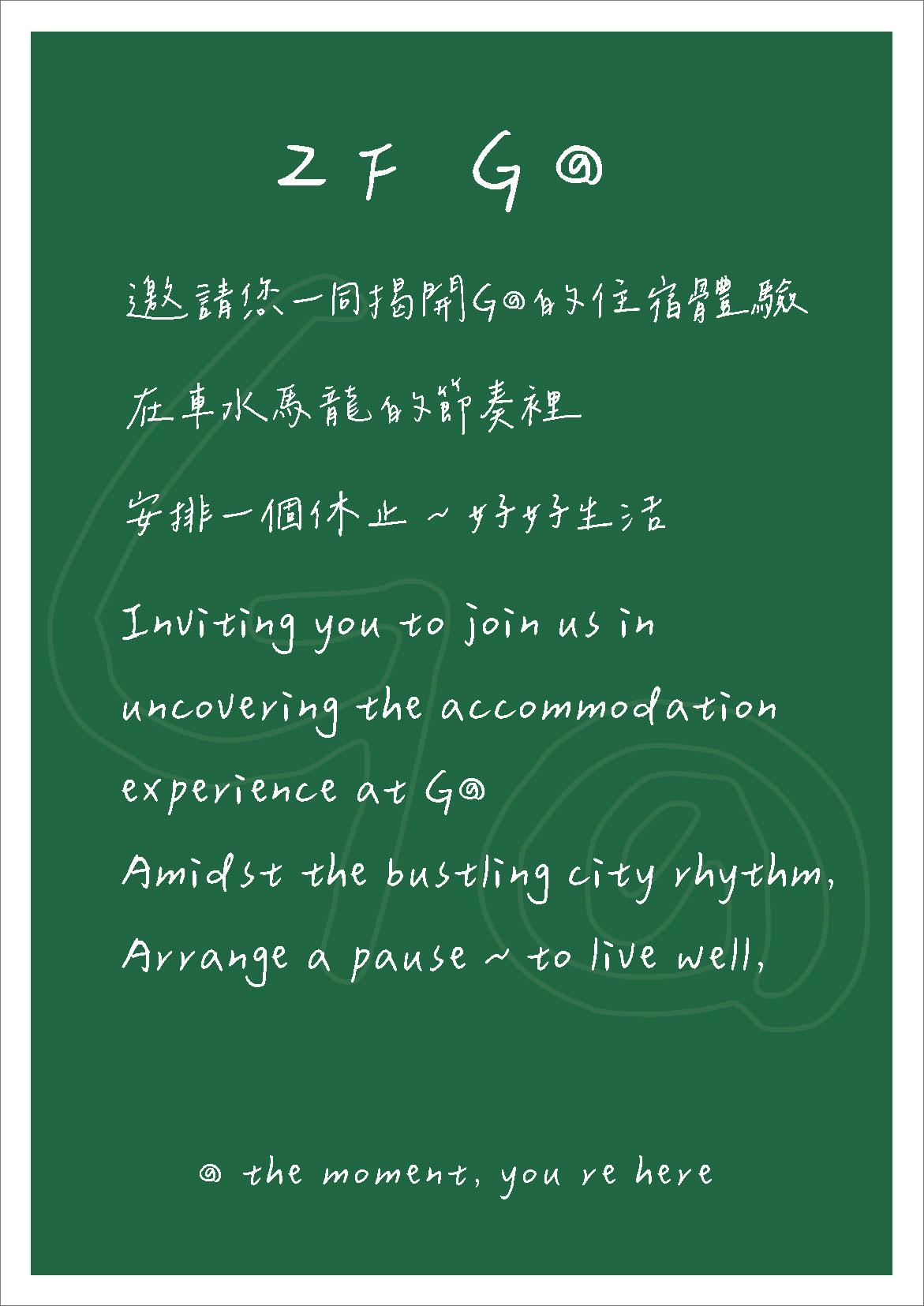 We invite you to enjoy the accommodation experience at G@ and to take a break from a busy day – live a good life!